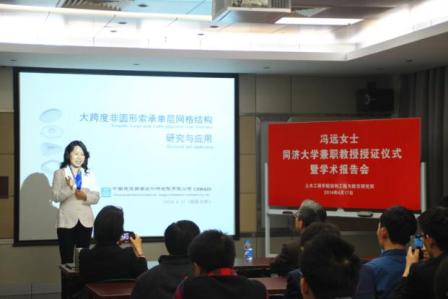 会上,同济大学土木工程学院院长顾祥林教授向冯远总工颁发了兼职教授聘书。顾祥林在讲话中高度评价冯远总工程师在我国空间结构设计、结构抗震研究领域所做出的突出贡献。期望同济大学与我院在学科建设、科研合作、学生培养与教育改革等方面开展积极合作。