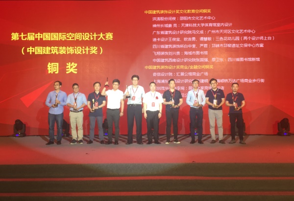 2017年6月8-9日,2017中国建筑装饰产业发展论坛暨第七届中国国际空间设计大赛颁奖典礼在深圳隆重召开。我院四川省图书馆新馆项目获得第七届中国国际空间设计大赛(中国建筑装饰设计奖)文教、体育、交通类别铜奖,国酒茅台医院装饰设计方案获得医疗空间方案类铜奖。院建筑装饰设计所所长、总建筑师张国强等四人代表应邀并出席典礼。