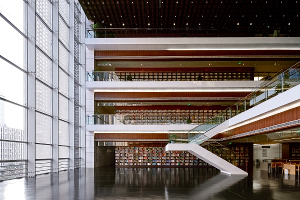 在四川省图书馆新馆装饰设计中,我院注重阅览氛围的营造及阅览空间的塑造,提倡开放与交流。让读者在安静而明亮的内部空间中,随意地取阅、交流,畅游于知识海洋。