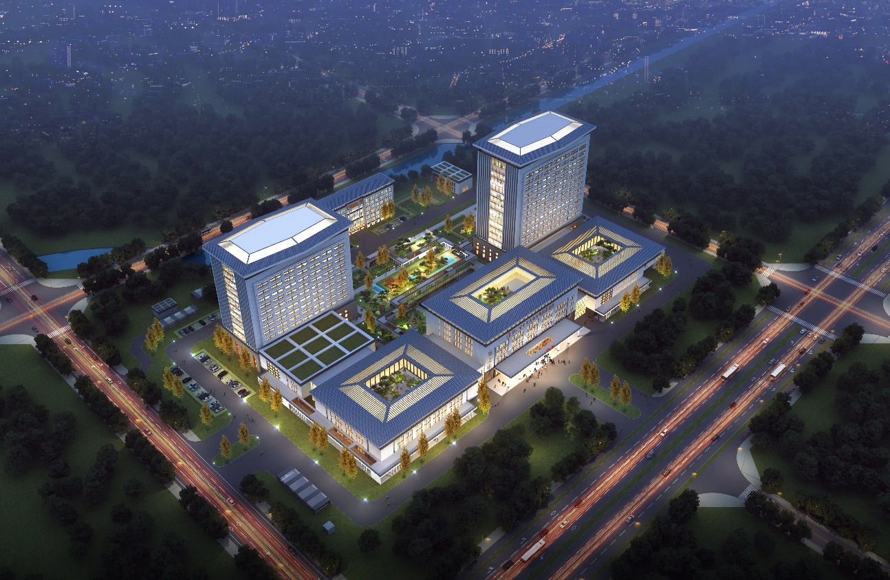 本项目位于成都高新南区新川创新科技园区,华阳大道与新成仁路交汇东侧。项目净用地面积79.2亩,总建筑规模约15万平米,床位规模1200床,拟建成一所集现代化、智能化、园林化为一体的三级甲等中西医结合医院。设计以集约化的形态回应现代医学的使用及管理效率,以围合式的院落呼应传统庭院的空间特征。通过建筑与环境的互动、穿插与融合,体现“两仪无极”的传统意境和“中西交融”的发展理念,打造具有文化内涵的空间布局形态。