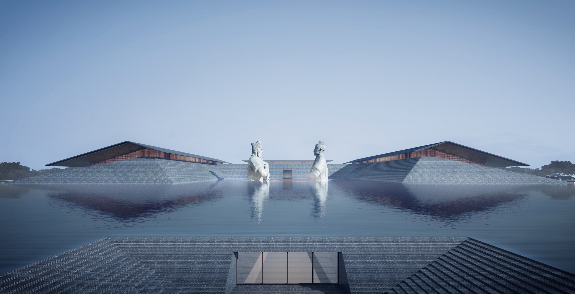 该项目位于成都市郫都区,望丛祠是为纪念蜀王望帝杜宇和丛帝而修建的祀祠,也是中国唯一的“一祠祭二主”、西南地区唯一凭吊蜀人先贤的最大帝王陵冢。方案顺应望丛祠的整体布局,自然延续原有水系,由自然到规整,围绕建筑形成现代西蜀园林的整体意境。方案运用出挑的青瓦悬山屋顶、竹条包裹的玻璃外立面,以现代的手法演绎传统西蜀建筑的特征,呈现浓浓的历史感。