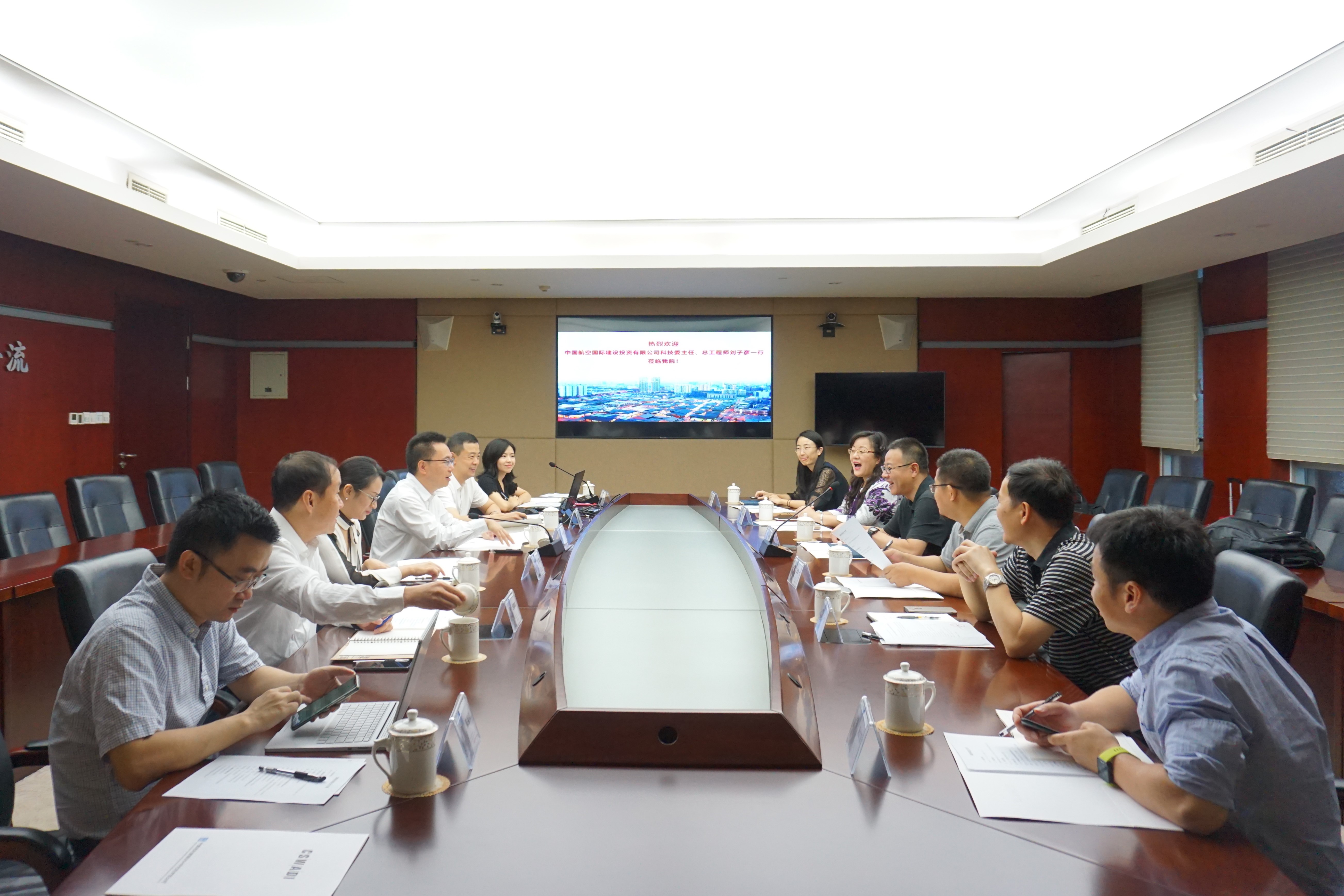 中国航空国际建设投资有限公司相关负责人陪同来访。人力资源部、科技部、中心工作室管理部相关负责人参加会议。(党政办公室供稿)