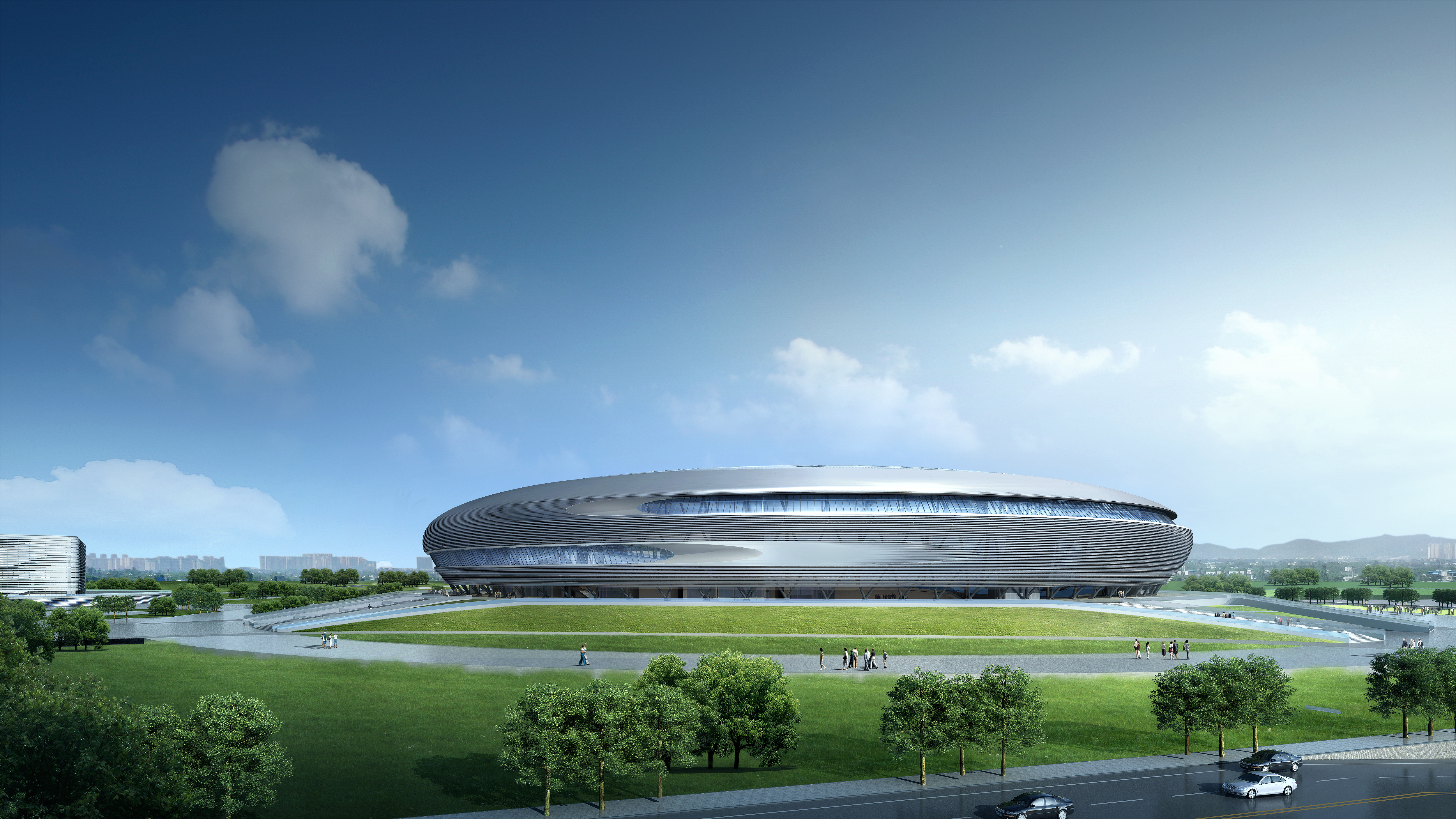 体育场建设用地460亩,位于体育公园东侧,毗邻西侧体育馆、小球馆、游泳跳水馆。建设内容包括4万座大型甲级体育场、400m标准热身场地及室外配套等,总建筑面积约116000㎡。