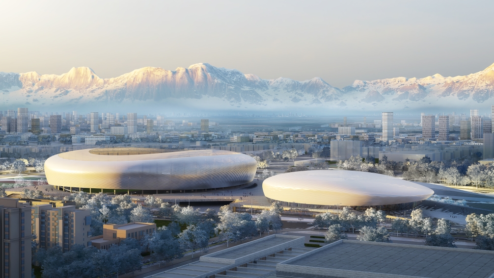 体育公园位于石河子市天南新区,南眺天山。设计以“起于城市,归于自然”为理念,以“丝路·绿洲”为灵感,采用大地景观手法的处理方式,融入以绿洲为主题的文化意象,将场地、环境与建筑融合为一个有机整体。建筑设计取意“丝路明珠”,以城市气质风貌为设计本源,利用简洁线条的设计元素,体现圆润的形体和细腻的肌理,如璞玉打造的明珠,经时间磨琢孕育华光,闪耀于起伏山峦之巅。(素材来源:体育建筑设计研究中心、设计三院)