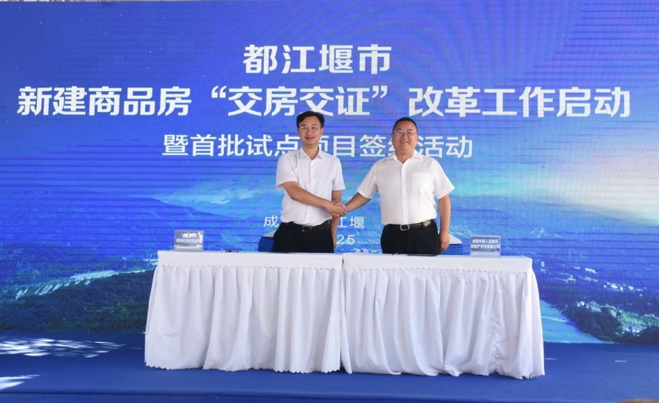 8月25日,都江堰市新建商品房“交房交证”改革工作启动暨首批试点项目签约活动在中建西南院投资项目中建人居·山水颐墅顺利举行。成都市规划和自然资源局党组书记胡斌,成都市住建局党组书记夏先义,国家税务总局成都市税务局总经济师郑勇,都江堰市委副书记、代市长张亚丹,以及都江堰市委、市政府、市人大及相关部门和各开发企业参加了此次活动。中建西南院党委副书记、总经理陈勇,中建西南院总经理助理刘联华应邀出席。