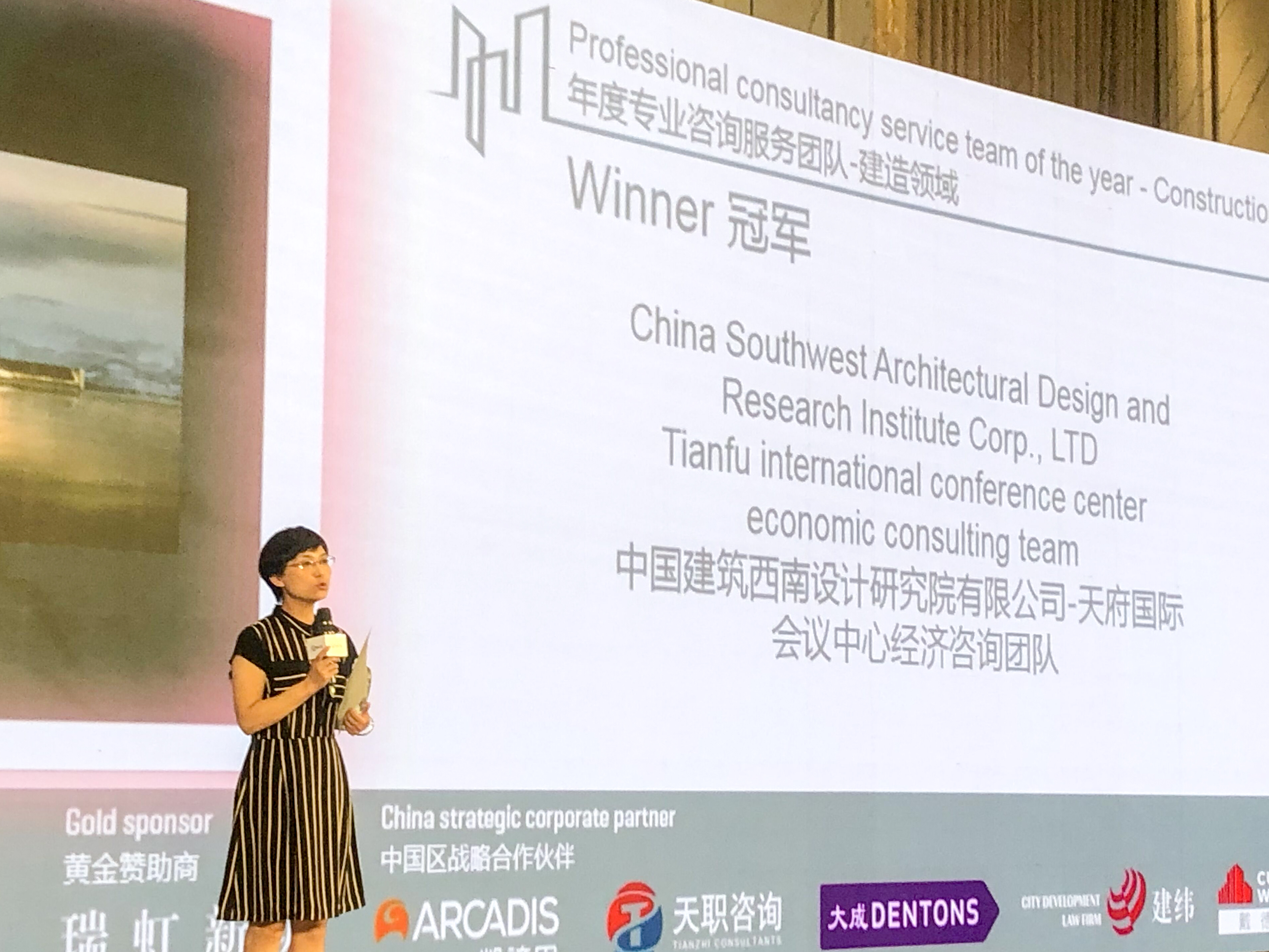 近日,由RICS皇家特许测量师学会主办的2019年RICS中国年度大奖(RICS Awards China)颁奖典礼在上海隆重举行。中建西南院“天府国际会议中心经济咨询团队”荣获2019年度专业咨询服务(工料测量咨询)团队-建造领域冠军;“兴隆湖团队”和“污水处理项目工料测量服务团队”获入围奖。