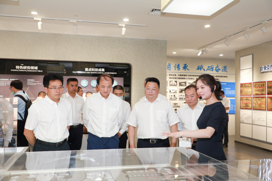 调研组一行首先在中建西南院党委书记、董事长,中建长江党工委书记、董事长龙卫国,中建西南院党委副书记、总经理陈勇陪同下参观了西南院企业文化馆,了解西南院70年发展历程。